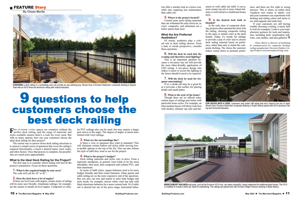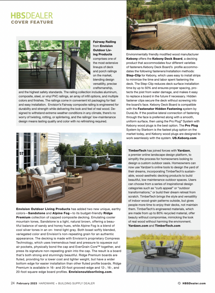 Envision Outdoor Living Products produces some of the industry’s most beautiful and durable composite decking materials; however, the industry is saturated with older, high-profile names. Envision sought to increase brand recognition to keep the company’s products top-of-mind with dealers and pros as well as ensure that potential customers distinguish the far-reaching benefits of Envision’s proprietary technology.