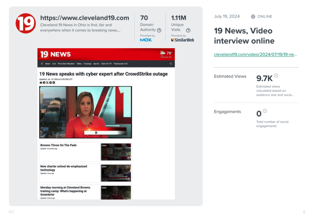 True recognized an opportunity for FIT to lead the conversation for the Cleveland community. We positioned Fred Franks, FIT’s CSO, as a trusted expert, securing interviews on three major news channels and reaching thousands of viewers. Beyond media outreach, we guided FIT’s communication efforts with strategic social media, email campaigns, and internal messaging, making sure their audience stayed informed and reinforcing their reputation as a trusted advisor during the crisis.